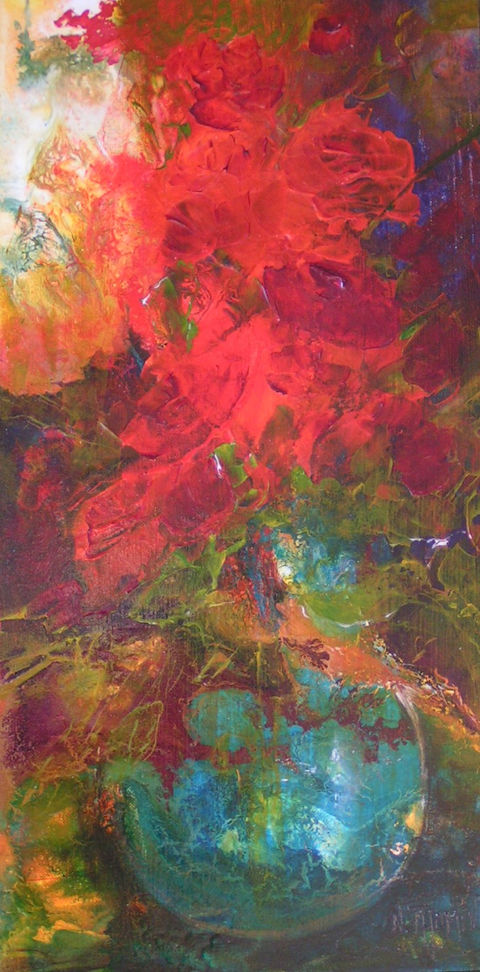 Artiste peintre, Nathalie Thomine crée ses œuvres en s'inspirant de cette nature si fascinante et merveilleuse et des balades dans les jardins en fleurs. Depuis une trentaine d'années, elle joue avec la couleur et le mouvement de la matière pour faire vivre ses créations et leur transmettre son énergie. Elle utilise une technique mixte.